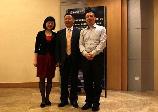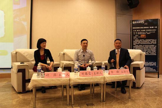 刘春雷主任、叶萍书记与论坛主持人韦锋教授的合影
