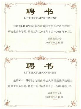 西政行政法学院领导为刘春雷主任、叶萍书记颁发聘书