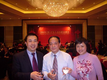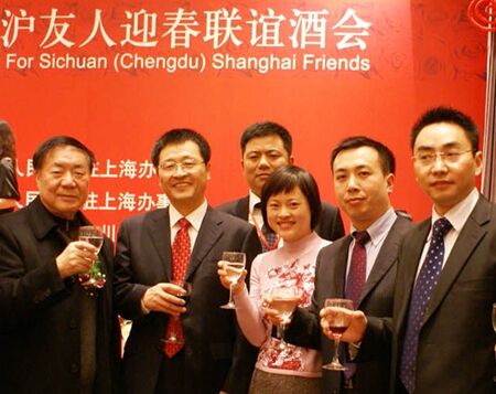 【四川省政府驻沪办胡玉林副主任与刘春雷主任、叶萍书记在川籍在沪友人联谊会上的合影】
