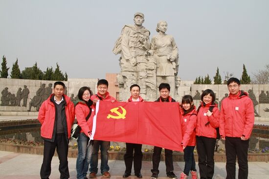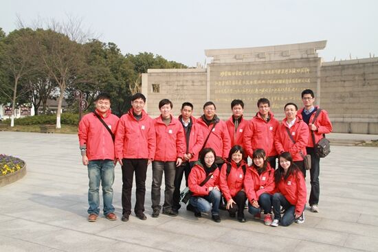 春雷党、团支部成员在沙家浜国防教育园前合影留念