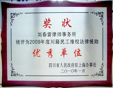 2010年2月4日,上海刘春雷律师事务所被四川省人民政府驻上海办事处授予法律援助先进单位。